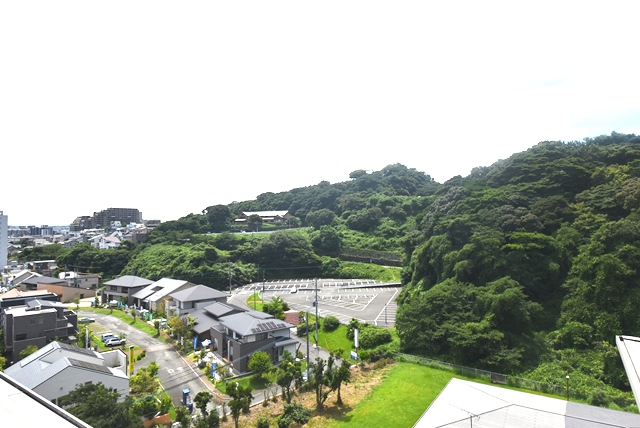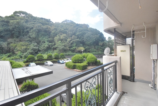 バルコニー部分、緑に囲まれた、採光明るい、閑静なバルコニーです。