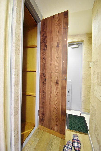 玄関部分。床・壁・天井張替済。建具改装済。玄関ホール部分に収納スペース多数。
