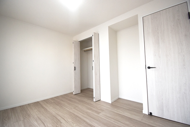 玄関側洋室部分。2026年2月 建具新調、洋室へ間取変更。室内全面リノベーション工事。クローゼットに変更。