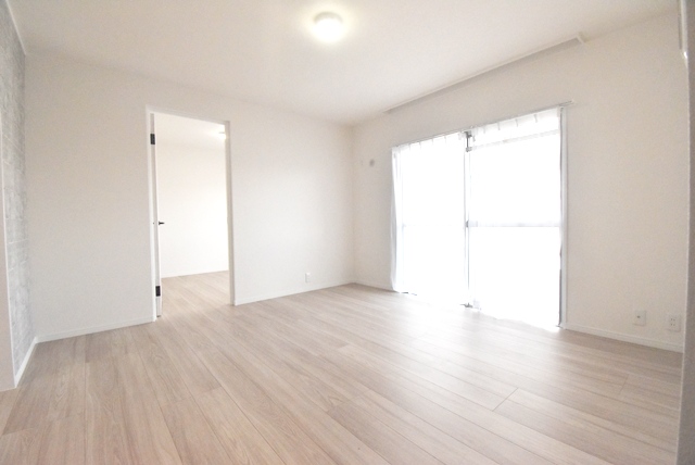 バルコニー側洋室部分。2026年2月 建具新調、洋室へ間取変更。室内全面リノベーション工事。クローゼットに変更。